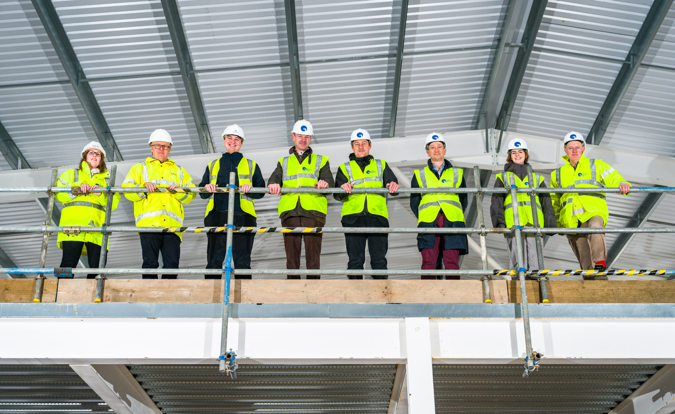 On one of the wettest and windiest days so far in 2025, plans to top-out The Ruddock by putting the last bolt on the steel framework were shelved, but the team still toured the site and viewed the interiors of the now well-advanced Logica 1 and 2 buildings.